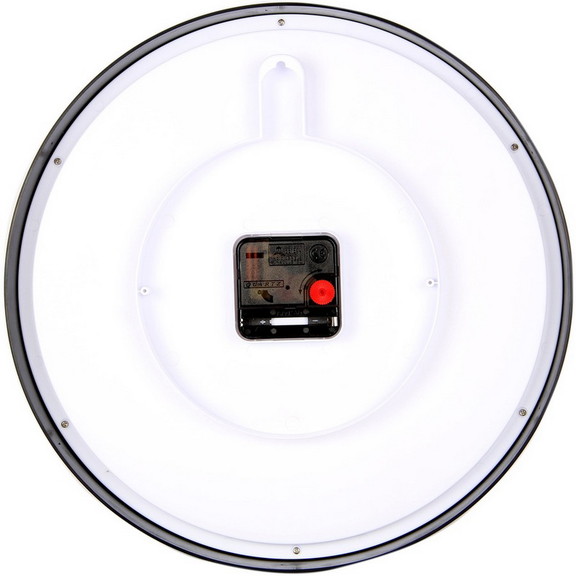 | Marketing Information | This attractive, 11.75" wall clock will add a touch of contemporary elegance to any home or office. Easy-to-read numbers are highlighted within a contemporary face design that features contrasting gray accents. This stylish face is encircled by a wide, heavy-duty, black plastic frame that is 1.5" deep. Clock also features a silent sweep movement that allows the second hand to sweep around the dial and eliminates all annoying ticking sounds. It uses one AA battery (not included). |